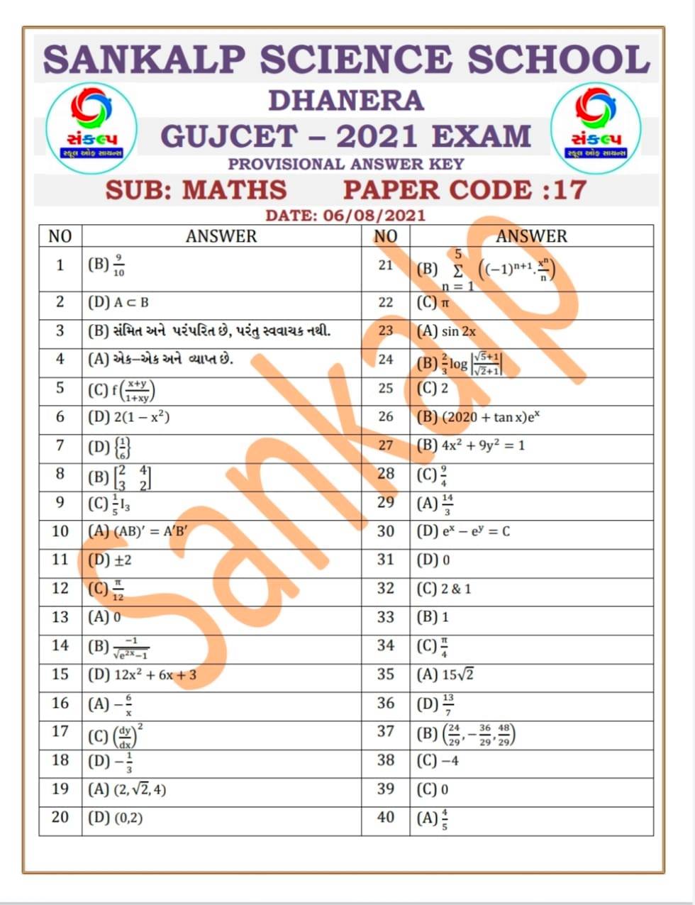 GUJCET 2021 Answer Key (Maths) – Unofficial Version Download 43 File Size 131.24 KB File Count 1 File Type Create Date August 7, 2021 Last Updated August 7, 2021 Download If any download is not working, Please Comment Below.
