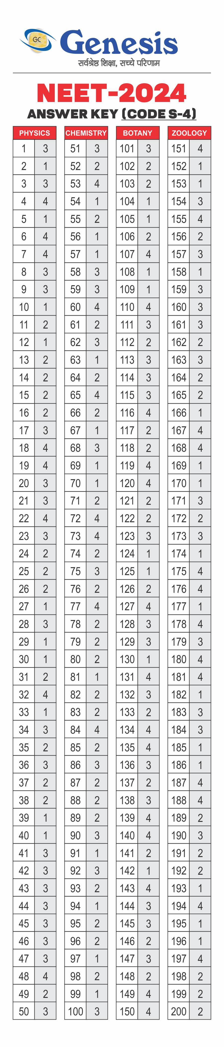 NEET 2024 Answer Key – Code S4 (Unofficial) Version Download 1624 File Size 379.23 KB File Count 1 Create Date May 5, 2024 Last Updated May 5, 2024 Download Download [download_link2]