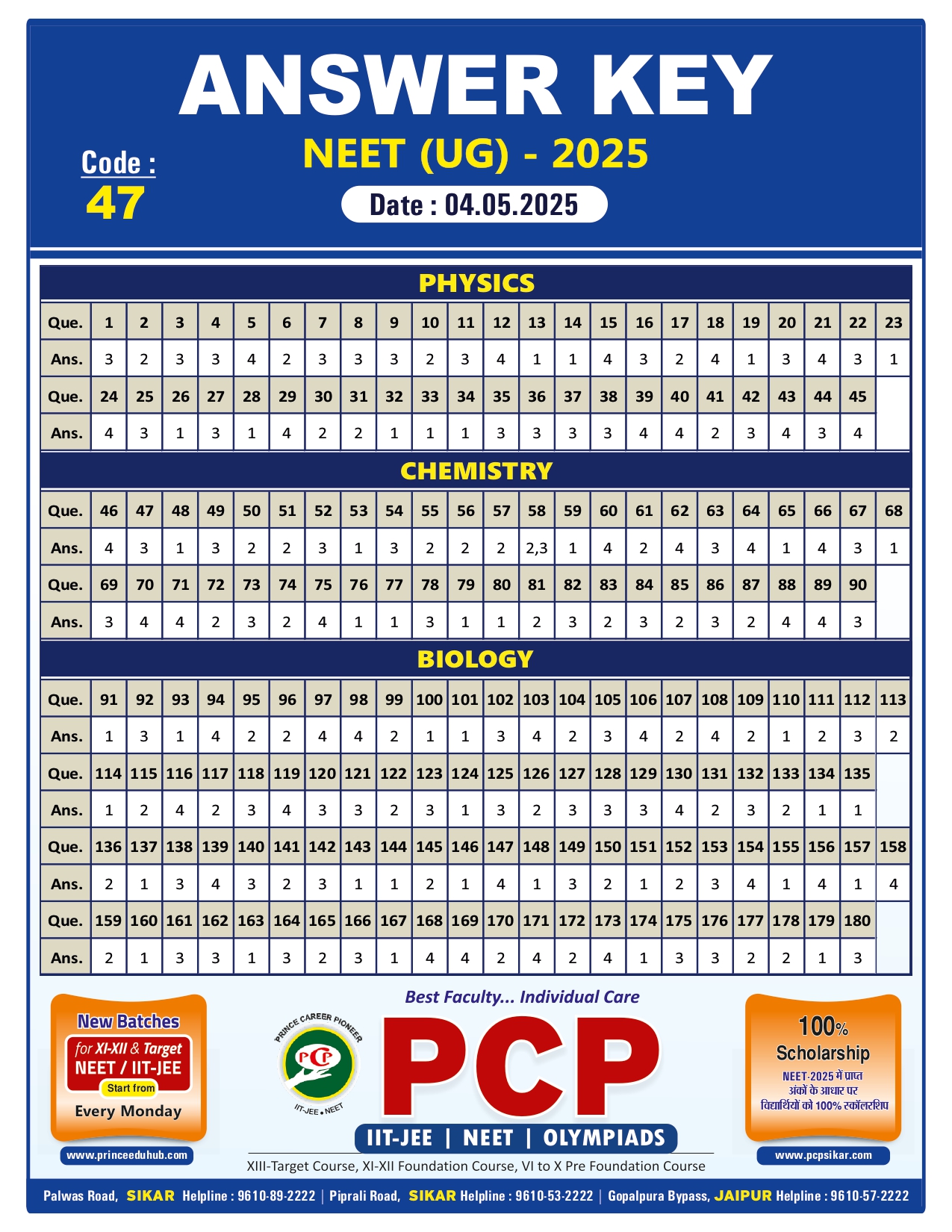NEET 2025 Answer Key (Unofficial) – Code 47 Version Download 80 File Size 1,017.96 KB File Count 1 File Type Create Date May 4, 2025 Last Updated May 4, 2025 Download If any download is not working, Please Comment Below.