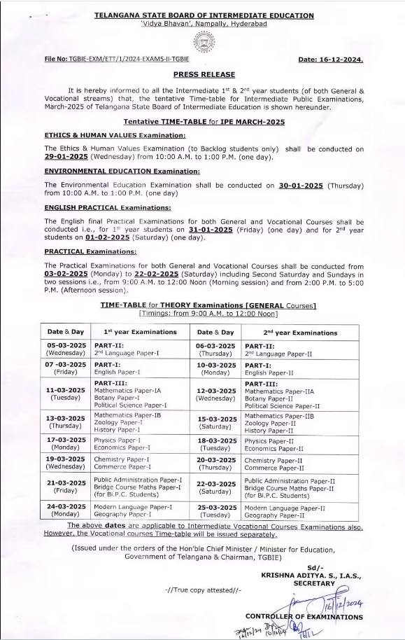 TS Intermediate Time Table 2025 (1st & 2nd Year) Version Download 64 File Size 203.65 KB File Count 1 File Type Create Date December 17, 2024 Last Updated December 17, 2024 Download If any download is not working, Please Comment Below.